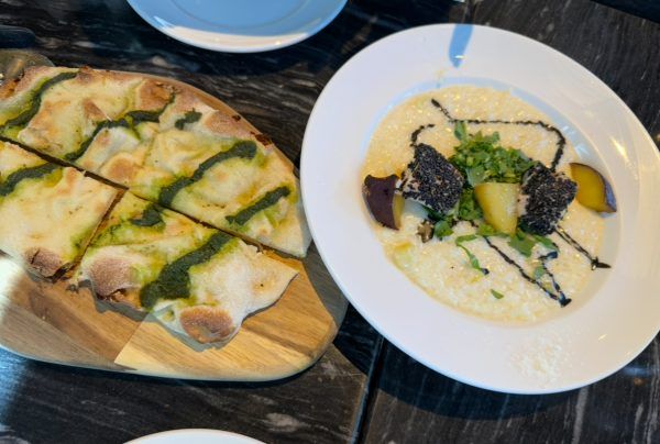 ランチにピザとリゾットをいただきましたがどちらも絶品で、どれを取っても期待以上の美味しさ。
