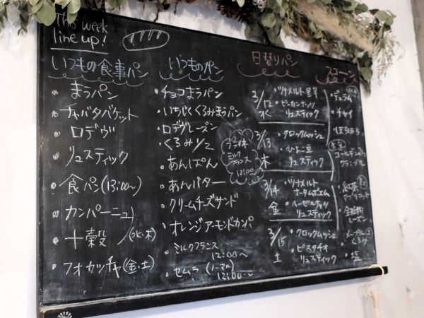 店内の黒板には今週のメニューが書いてありました。日替わりパンも!