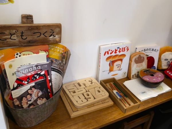 小さな椅子と机があって、パズルやお絵描きができます。パンを選んでいる間、子どもが退屈しないで待っていられるのが良いですね!