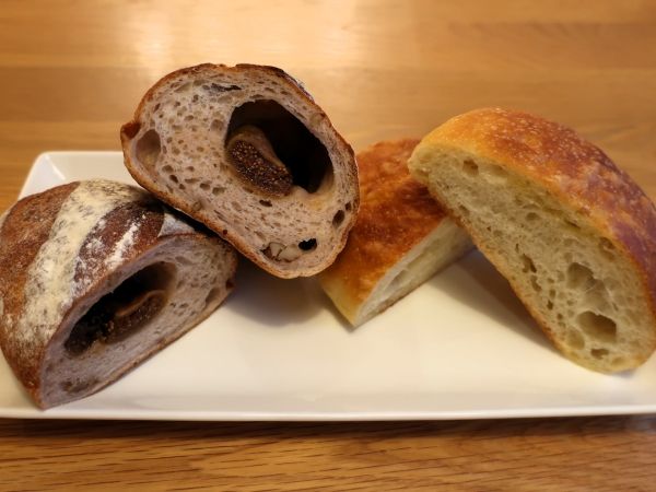 大きめサイズのパンで、ハード系とおもいきや、もちもち系でやわらかい。平均より水分量を多くする多加水製法により、もちもち食感に仕上げているのだそう。いちじくのゴロッと感も嬉しいです!