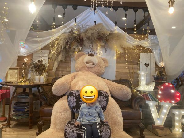 大きなくまちゃんのぬいぐるみ。(普段着の息子ですが可愛いお洋服だともっと映えそうです笑)