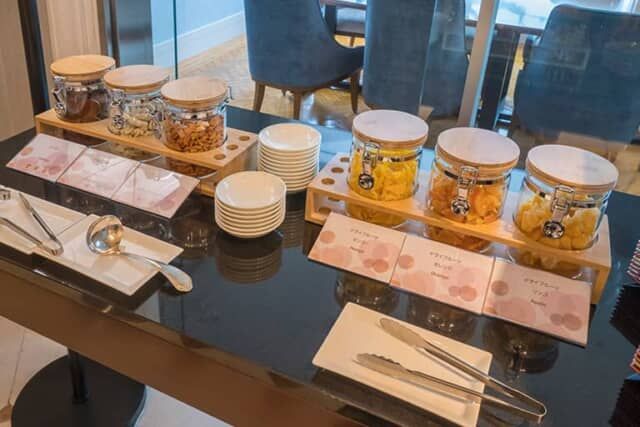 20時から21時まではティータイム( L.O.20:30 )。軽くつまめるクッキーやミックスナッツなどのスナック類が用意され、コーヒーや紅茶などのソフトドリンクを楽しめます。この時間になると利用客も少なくなって、レストランでのディナーの後や、眠る前に軽く飲み物を楽しみたい方が利用されているようでした。