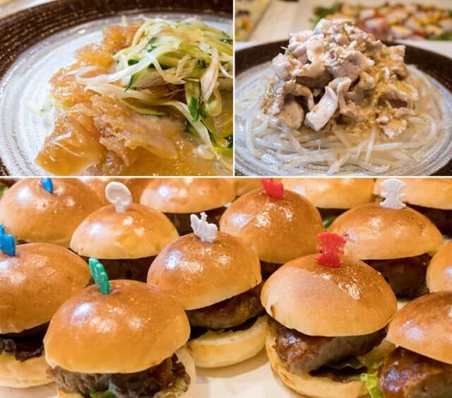 ▲この日は「豚バラ肉の湯引き 胡麻ソース掛け」や「ハンバーガー」がありました