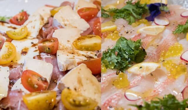 ▲「魚のカルパッチョ レモンペッパードレッシング」など