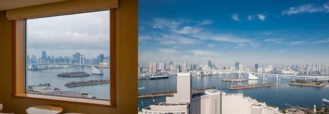 ▲レインボーブリッジや東京の高層ビル群を一望