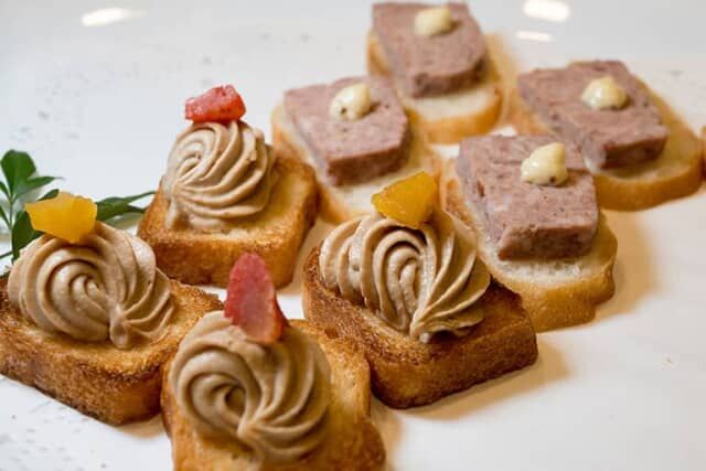 ▲「フォアグラムース」と「パテ・ド・カンパーニュのカナッペ」