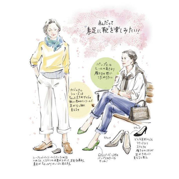 これまでのシニア層とはセンスも価値観も大きく異なるいまの60代。“新しい大人世代”としてどうありたいか、日々修行中のイラストレーター植草桂子さんのエッセイ。今回は「“素足に靴”を楽しむ」お話です。