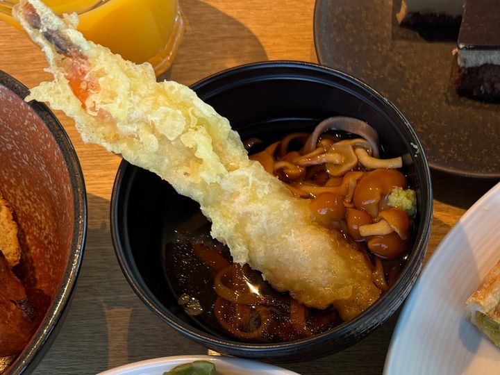 朝食ビュッフェには珍しい自家製お蕎麦と天ぷらが美味しかったです!!