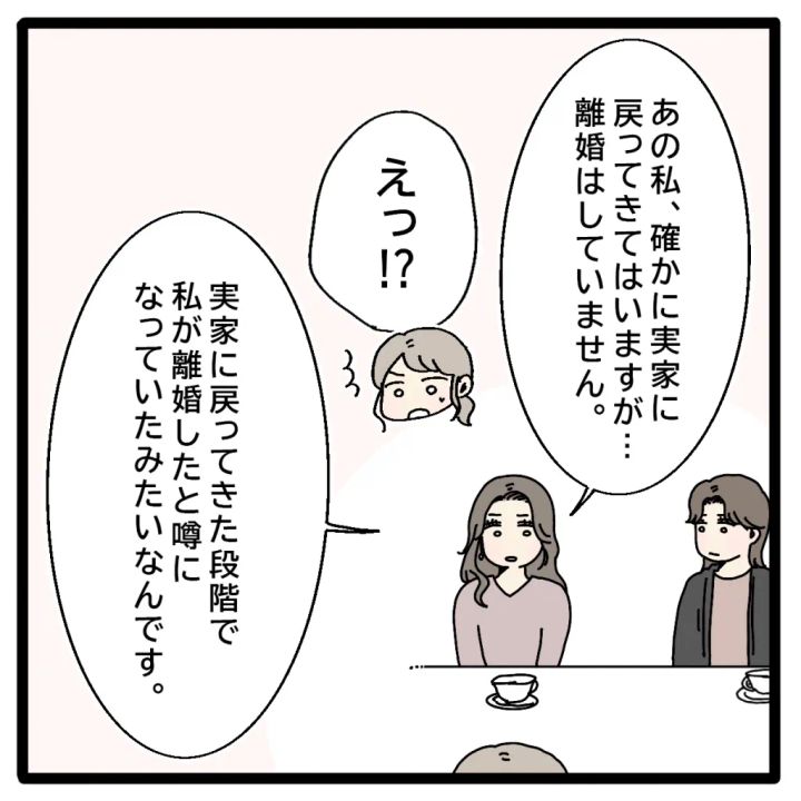 それを聞いた聡子さんは「あの私、確かに実家に戻ってきてはいますが・・・離婚はしていません。実家に戻ってきた段階で私が離婚したと噂になっていたみたいなんです。」と言いました。