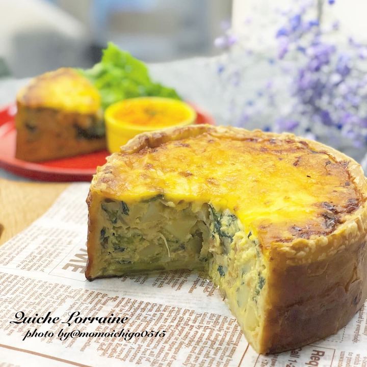 @momoichigo0515 さんは、18cmの深型でお店のような分厚いキッシュを手作り。冷凍パイシートを使うと、おうちでもより手軽にキッシュが楽しめます。
