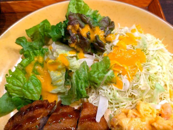 キレイと言えば、このキレイなオレンジ色のドレッシングソースもおいしいです。野菜は契約農場から仕入れる有機野菜。こだわりの有機野菜は、兵庫県と京都府の農園から新鮮な旬の野菜が直送されているそうです。