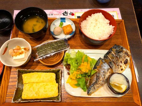焼魚定食は、メインの焼魚は鳥取県境港から毎日直送される新鮮な魚です!メインの鯖の焼魚は旨味たっぷりです。だし巻き玉子・ミニ冷奴・味海苔・味噌汁・小鉢・白ご飯付きです。駅直結で、ランチメニューは豊富で、ボリューム満点でリーズナブルな価格の居酒屋は、たくさんの「おいしい」と「笑顔」が飛び交うお店を目指しているそうです。