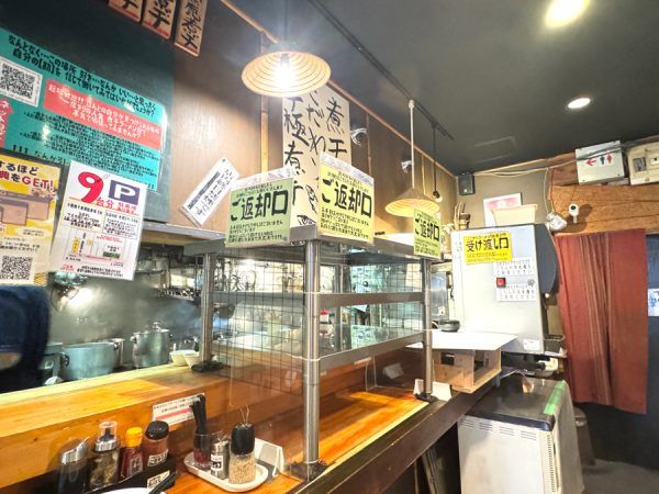 食券を渡したあとに番号札が渡されるので、番号が呼ばれたらカウンター脇の受け渡し口に自分でラーメンを取りにいくスタイル。