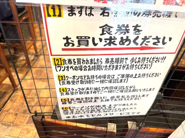 食券を購入したら、お店の方が受け取りに来てくれるので券売機の前で待ちましょう! 券売機横に流れが書いてあるのも助かる~。
