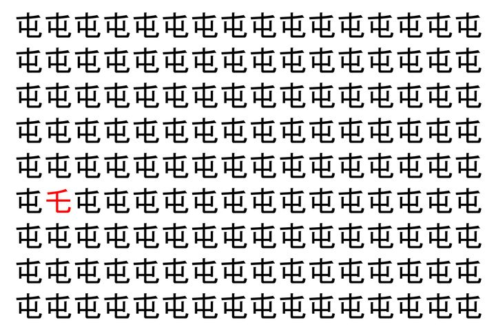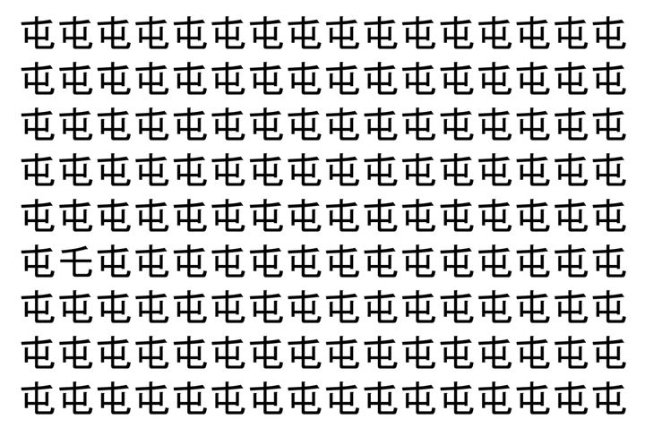 【脳トレ】「屯」の中に紛れて1つ違う文字がある!?あなたは何秒で探し出せるかな??【違う文字を探せ!】