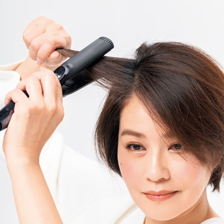 「白髪が目立つのはハネたりうねったりするから。まずはアイロンなどで質感を揃えてから色を整えると白髪の存在感が少なく」