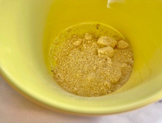 次に熱湯130ml~150ml程度を注ぎ、すぐによくかき混ぜて完成です。