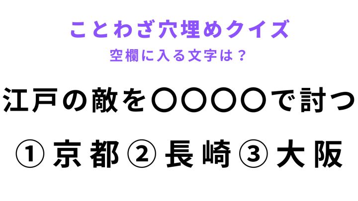 「江戸の敵を〇〇〇〇で討つ」の空欄に文字を入れると、あることわざが完成します。