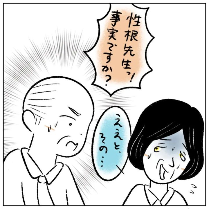 すると、お母さんが急に何かを思い出したように「あぁっ!」と大きな声を出したので、性根先生はビクーッ!