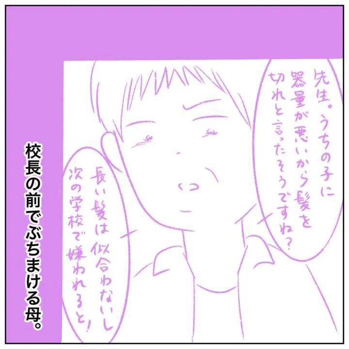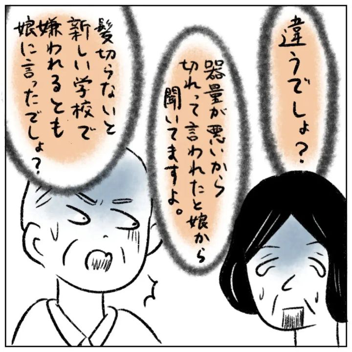 しかし、そんな性根先生の言い訳をお母さんは一刀両断。「違うでしょ?器量が悪いから切れって言われたと娘から聞いてますよ。髪切らないと新しい学校で嫌われるとも娘に言ったでしょ?」と詰め寄ります。