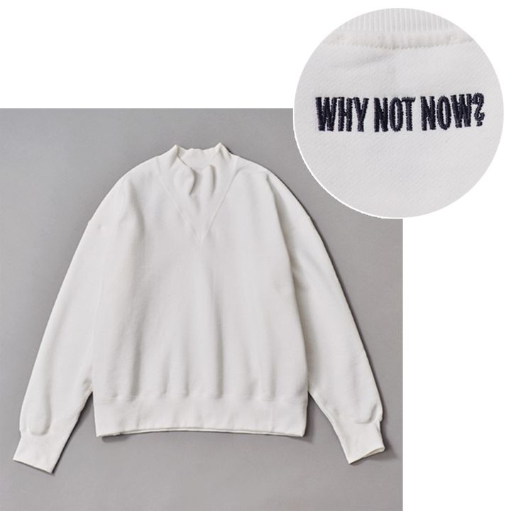 映えるクリーンな白。コートを脱ぐと背中の刺繍がチラ見え。首元の立ち上がりや袖のシルエットが絶妙で、ワイドパンツと合わせるだけでサマになります。裏起毛なので1枚で温かいのも嬉しい♡