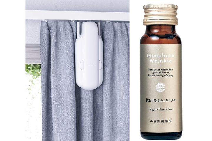 右:夜の和漢ドリンクで睡眠の質と目覚めを改善。大麦由来のGABA等配合。飲むドモホルンリンクル[機能性表示食品] 50ml 10本 ¥4,320(再春館製薬所)