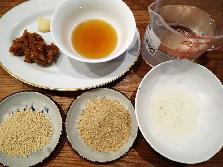 ボウルに、みそ、白すりゴマ、鶏がらスープの素、みりん、水を入れてよく混ぜ合わせる。
