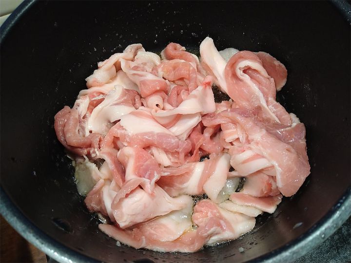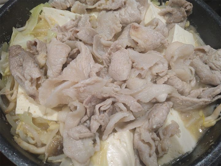 6.3の豚肉を戻し入れ、3分ほど煮たら完成。