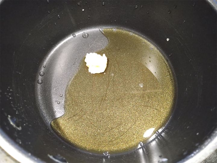 3. 鍋にゴマ油、にんにくを入れて弱火で香りが出るまで炒める。豚肉を加えたら中火にし、火が通るまで炒めて一旦取り出す。