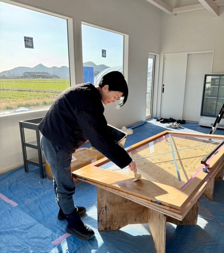 店舗建設は当初の予定から約2カ月遅れ、12月末にスタートしました。しかし建設が始まると建設前の苦労が嘘のように、あっという間に進んでいきました。基本的に施工はすべて工務店にお任せしたのですが、私たちができることはお手伝いさせていただきました。DIYは得意ではないのですが、少しだけ自分たちの手をかけた部分があると、より愛着が湧く気がします、といっても慣れてないので後からプロの手直しが入るのですが(笑)。