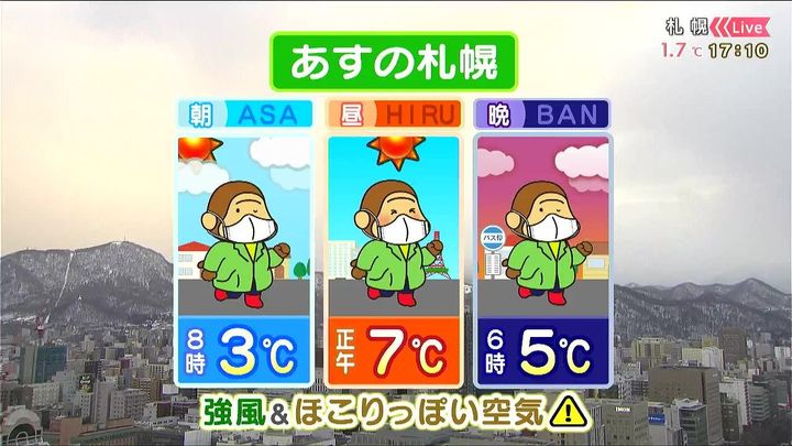あす1日(火)の札幌です!朝昼晩の天気をもんすけでお伝えします!