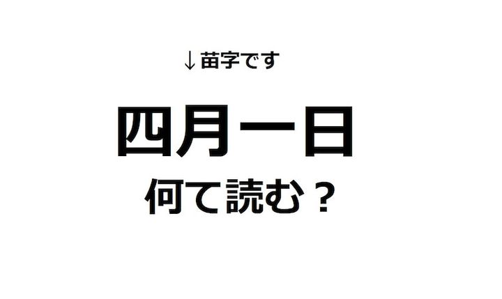 4月1日はエイプリルフール。軽めのうそなら許されるという、遊び心のある記念日ですよね。そこで本日は、4月1日にちなんで、ネットで見つけた「日付が苗字の難読漢字クイズ」を、おひとつ♪4月1日を漢数字で書くと「四月一日」となりますが、実は苗字にもあるそうです。もちろん「しがつついたち」ではありません。さて、何と読むのでしょう?4月1日は新年度がスタートするから…「としはじめ」さんとか?(笑)
