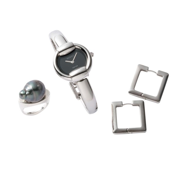 シアーニットカーディガン¥34,100〈ジェーン スミス〉デニムブレザー¥99,000〈フランケン〉デニムパンツ¥24,200〈ニードバイ フォー アダム エ ロペ/別注NINA〉メリージェーンパンプス¥13,200(すべてアダム エ ロペ)アクセサリー(スタイリスト私物)