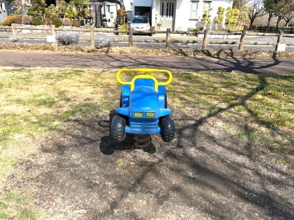 多くはないですが、遊具もありますよ♪みんなが大好きなすべり台やスプリング遊具。