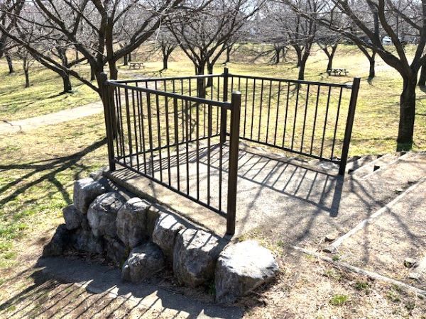 ゆるやかな斜面には、桜を楽しめる場所が色々とあります。これはお花見台でしょうか。