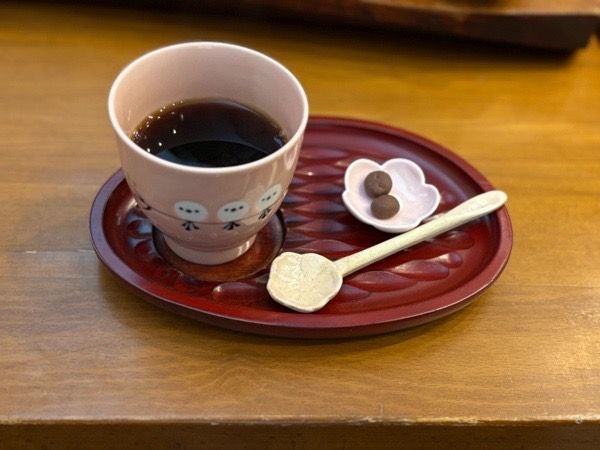 お好きなコーヒー豆100g、またはお菓子や雑貨を1,000円以上購入すると、今日のお味見が出てくるよ(試飲)。