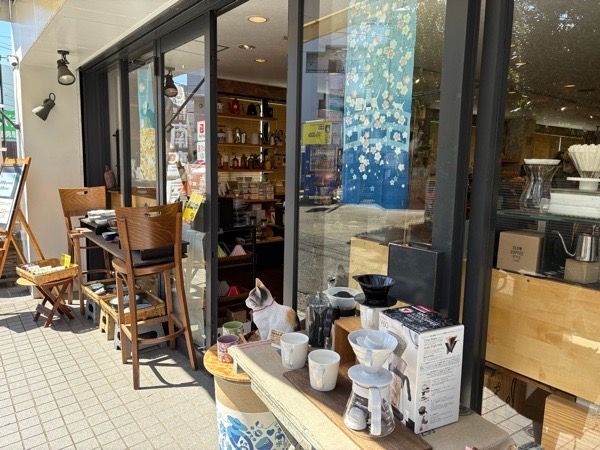 お店の前に雑貨や食器があるのですぐにわかるよ。