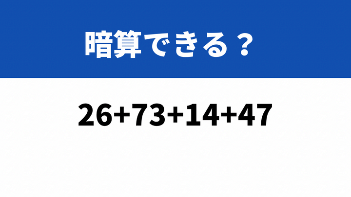 工夫して5秒で計算してみて!「26+73+14+47」→暗算できる?