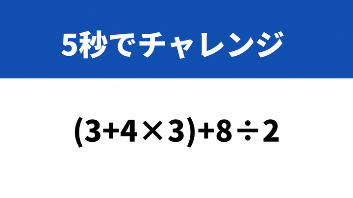 正しい順番で計算できる?「(3+4×3)+8÷2」→5秒で暗算チャレンジ!