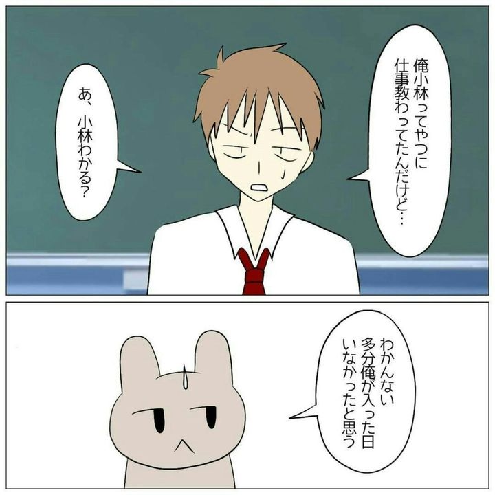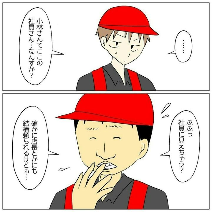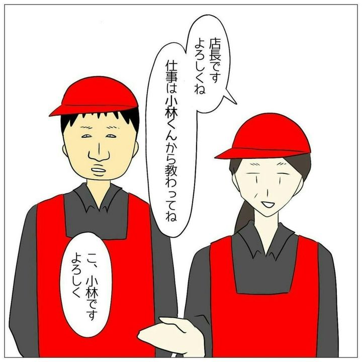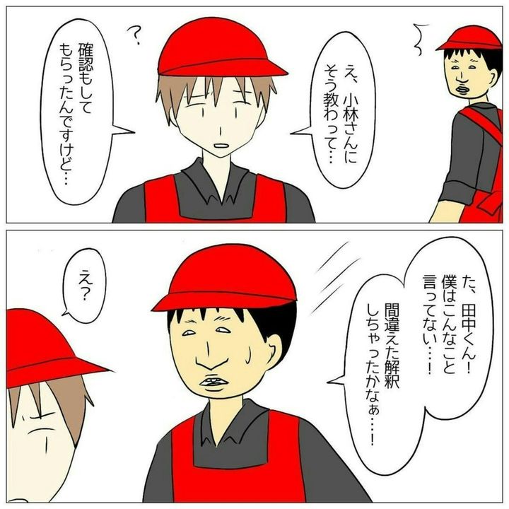 ハンバーガーショップで、バイト初日を迎えた田中くん。教育係として紹介されたのは、「小林」という先輩でした。