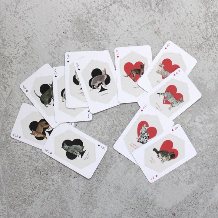 トランプカードには、本物そっくりのかわいいイラストのほか、それぞれの品種名を記載。自分の好きなネコ種・イヌ種を愛でることはもちろん、いつか見かけたあのネコ、あのイヌたちの品種名まで答え合わせできてしまう優れモノです。