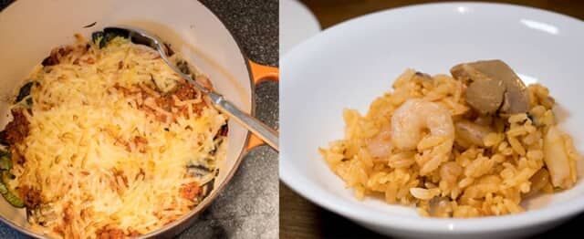 ▲「大豆ミートを使ったベジタブルグラタン」と「東京産ゆず胡椒香るシーフードピラフ」