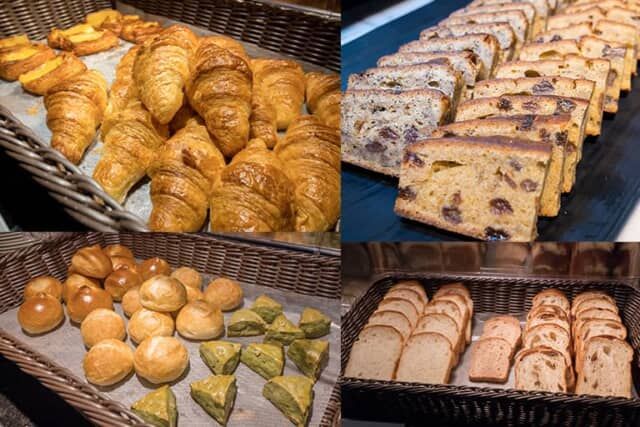 ホテルメイドのパンが並ぶのは嬉しいですね。リンゴデニッシュや抹茶スコーン、レーズンブレッド、ホワイトロール、イギリスパンなど、試してみたいパンがよりどりみどり。特に芳醇なバターの香りが広がるクロワッサンは、ぜひ試してみてください。