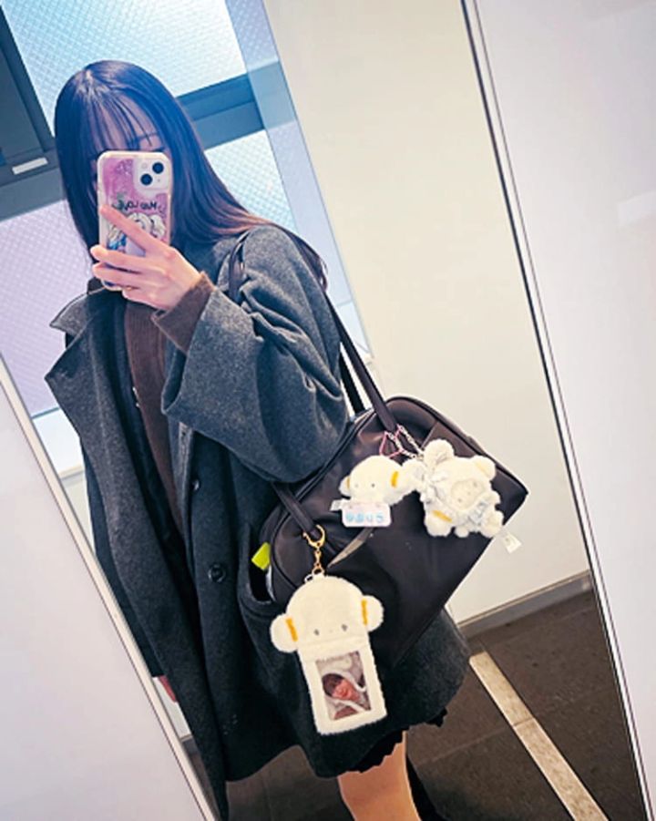 バッグの中は、ペンラやネームボード、カンペなどライブ中に使うものと、名前プレートつきのマスコットもIN。可愛い写真を撮るのも楽しみなので♡」