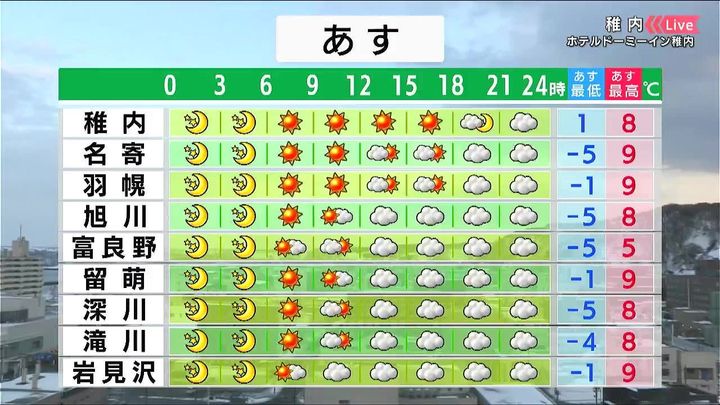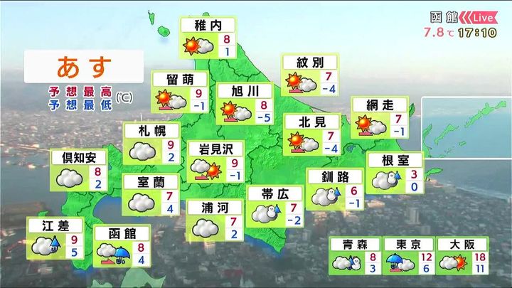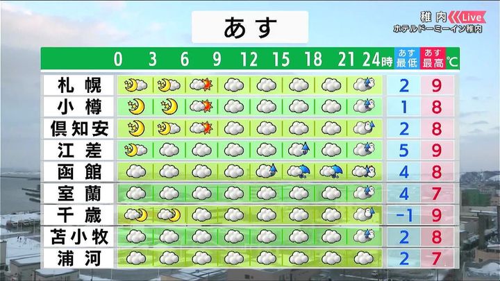 ・あすの札幌の朝昼晩の天気