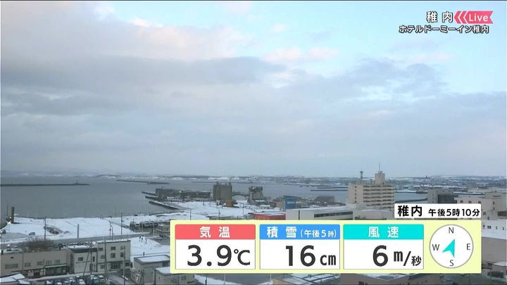 背景は1日午後5時ごろの稚内情報カメラ