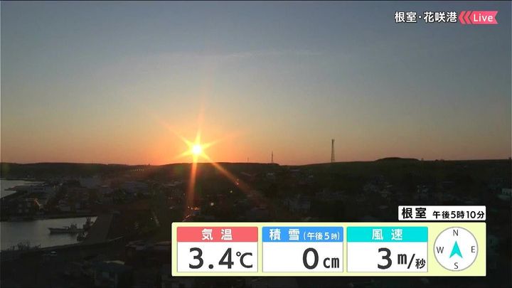 背景は1日午後5時ごろの根室花咲情報カメラ