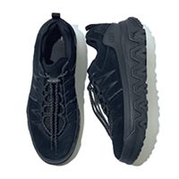 トグルレース仕様で靴ひもがほどけるストレスがなく、フィット感の調整や着脱も簡単。厚底で視線を散らし、脚を露出する気恥ずかしさを軽減。大きめジャケットに負けないブーツ感覚の厚底スニーカーでスタイリングにも緩急を。