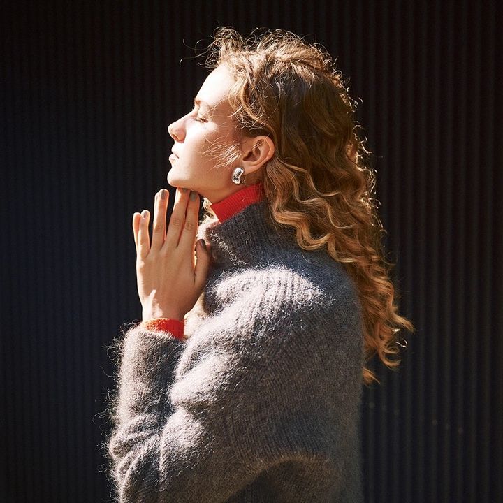 春先のちょっと寒い日には、上から同じハイネックのニットを重ねて。ハイネックどうしも色と形に差をつければバランスよく見違えも図れる。モヘア×オレンジの華やぐニットのレイヤードは、無機質なシルバーのイヤリングがニットの重みをさりげなく払いつつシンプルに。