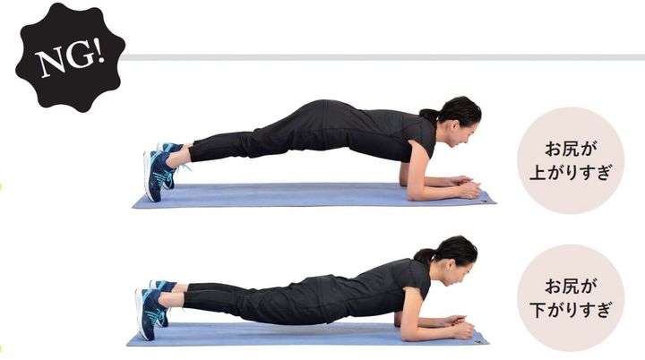 体幹は一直線に。お尻の下がりすぎ、上がりすぎに注意。